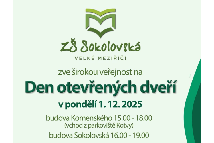 Zveme Vás na Den otevřených dveří, který se uskuteční v pondělí 1. prosince